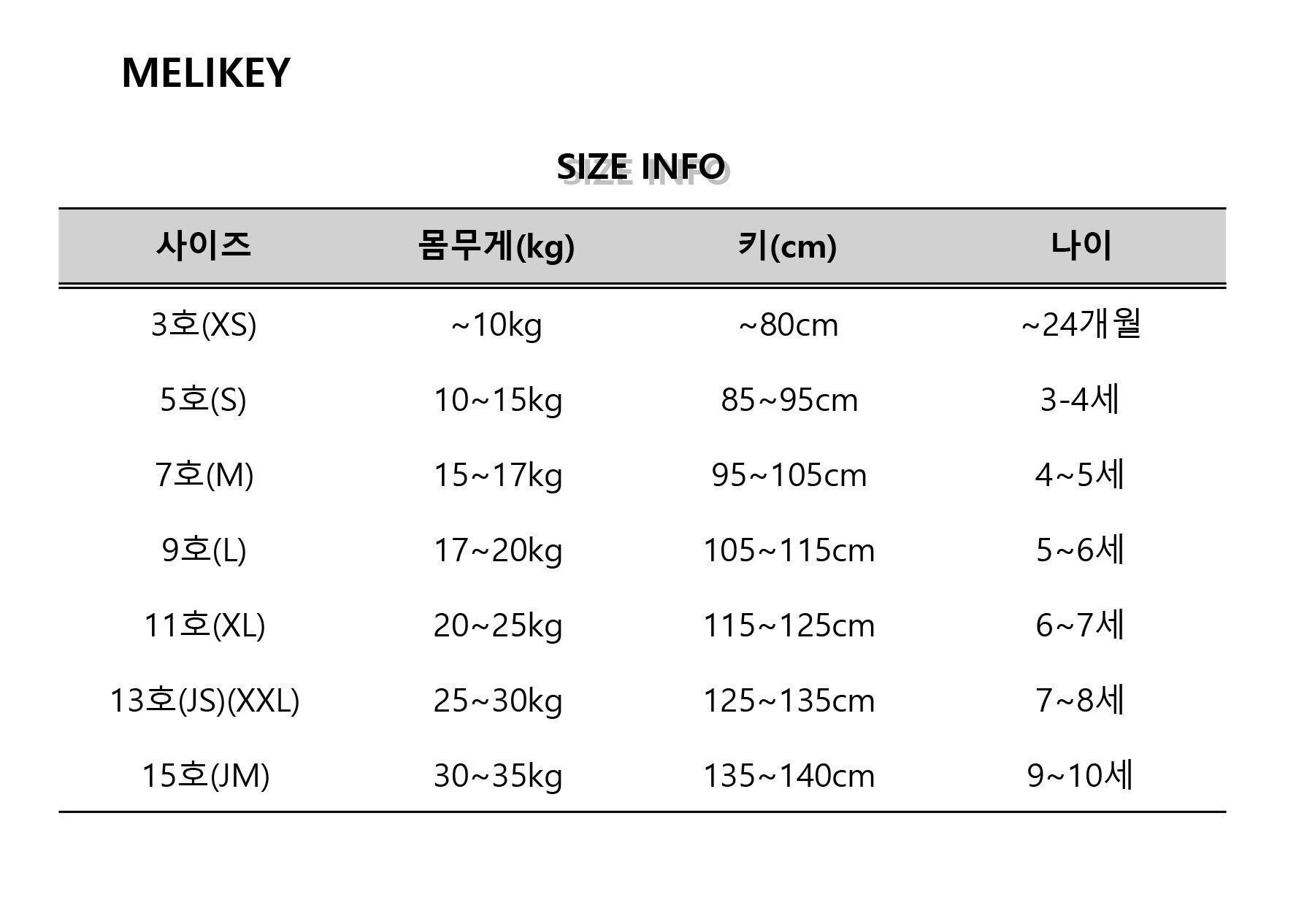 7(M) : 95-105cm / 15-17kg / 4-5y